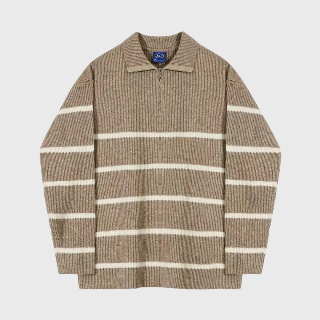 Теодора - Пуловер с дълги ръкави и кръгло деколте на райета