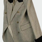 Впечатляващо сако с двустранно закопчаване, което носи вечна елегантност във всяко появяване. Със своята елегантна яка с контрастна текстура и копчета отпред, това сако подчертава софистизация ви вид. Идеално е за небрежни шик комбинации, но също така е перфектен за бизнес поводи.