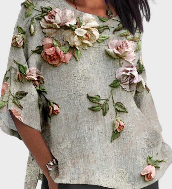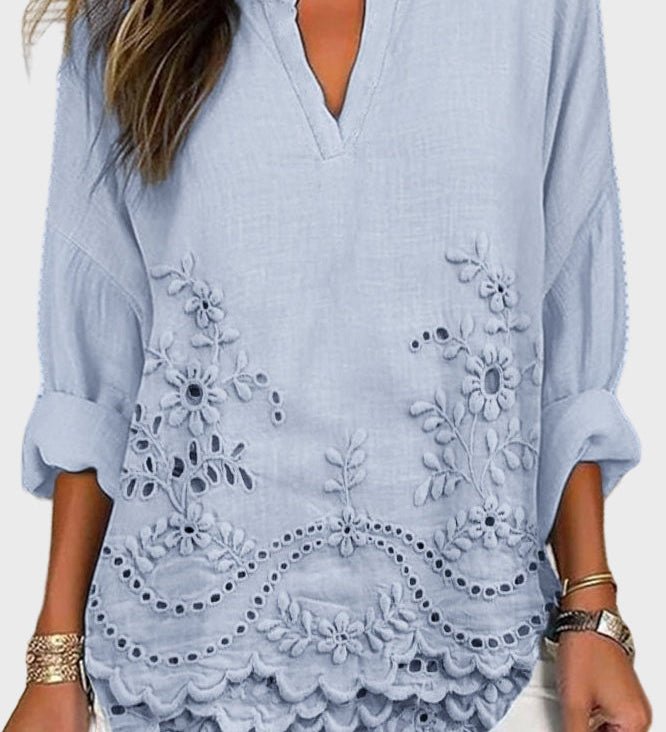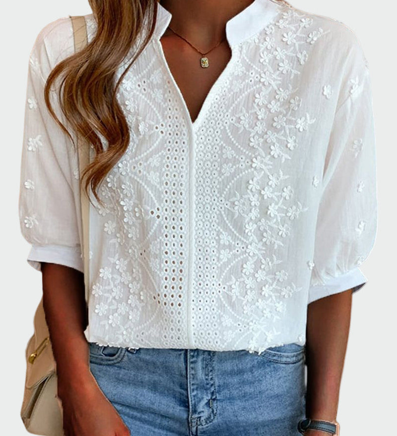 Виктория - Тениска с дантелен детайл и надути ръкави