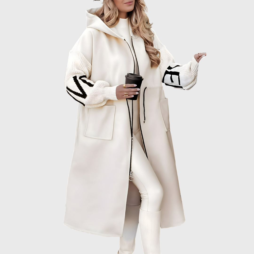 Гергана - Дамско яке с плетени ръкави и качулка