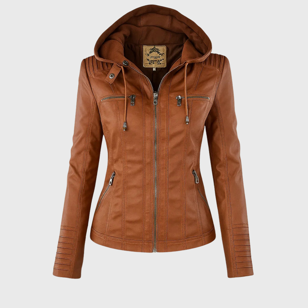 Това дамско яке съчетава модерност и елегантност в прилепнал дизайн, който подчертава силуета. С подвижна качулка и преден цип, то предлага практичност, без да жертва стила. Идеално за впечатляващи визии както през ден, така и вечер.