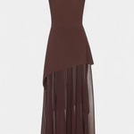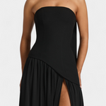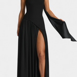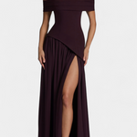 Софистирана и пълна с движение, роклята Райна съчетава структуриран топ с ефирната лекота на шифона. Нейният off shoulder деколте подчертава женствеността с изискано докосване, докато дългата пола с боков разрез внася динамика и съблазнителност. Проектирана да се откроява по елегантни поводи, това е парче, което естествено балансира модерността и вечността.
