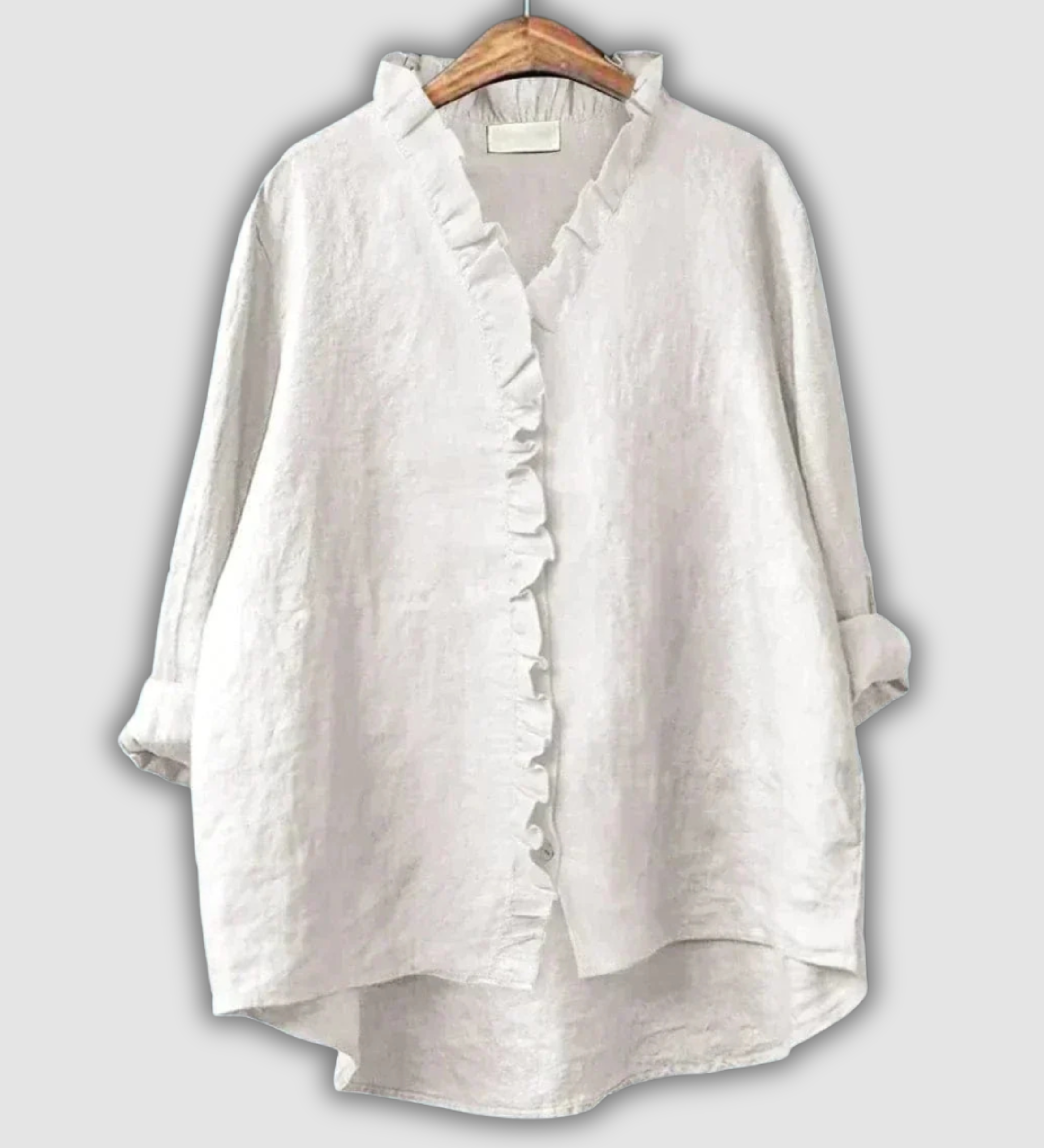 Катя - Многоцветна Ленена Блуза с Артистичен Узор