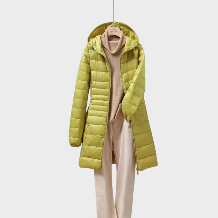 Дългото зимно пухено яке е вашият идеален спътник за студените дни, съчетаващ елегантност и топлина. С него модерен силует и практична конструкция, ще се чувствате уверени и стилни, независимо от времето. Високата и удобната качулка осигуряват допълнителен комфорт, докато перфектната топлоизолация предпазва от студа през зимата.