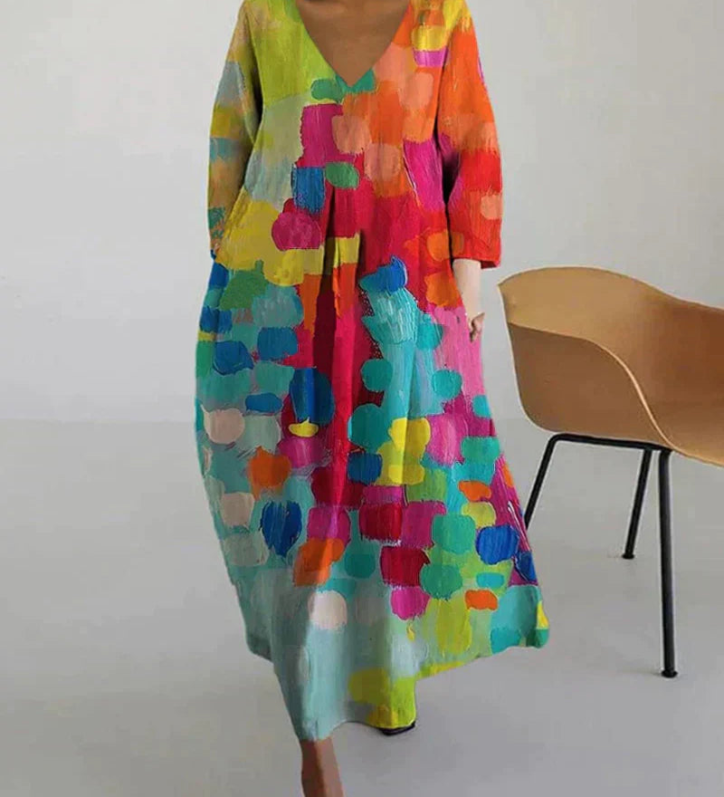 Даниела - Многоцветна лежерна бохо дълга рокля