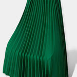 Импозантна и ефирна, тази плисирана пола с висока талия и широка крой представлява изявен моден елемент за всеки гардероб. Идеална за стилни визии от сутрин до вечер, тя комбинира движение, елегантност и вечерен характер. С високата си талия, тази пола подчертава фигурата и придава увереност на всяка дама. Плисираното тъкане добавя поток и грация, а широкият крой осигурява комфорт и стил.