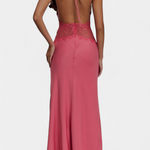Дизайнът на този рокля излъчва изискана сексуалност и сложна елегантност. С дълбокия халтер изрез, който подчертава деколтето, и деликатната чипкова лента на талията, тя създава перфектен контраст между субтилното и смелото. Течната материя обгръща тялото с грация, докато напълно откриете гърба добавят неочакван и смел обрат.