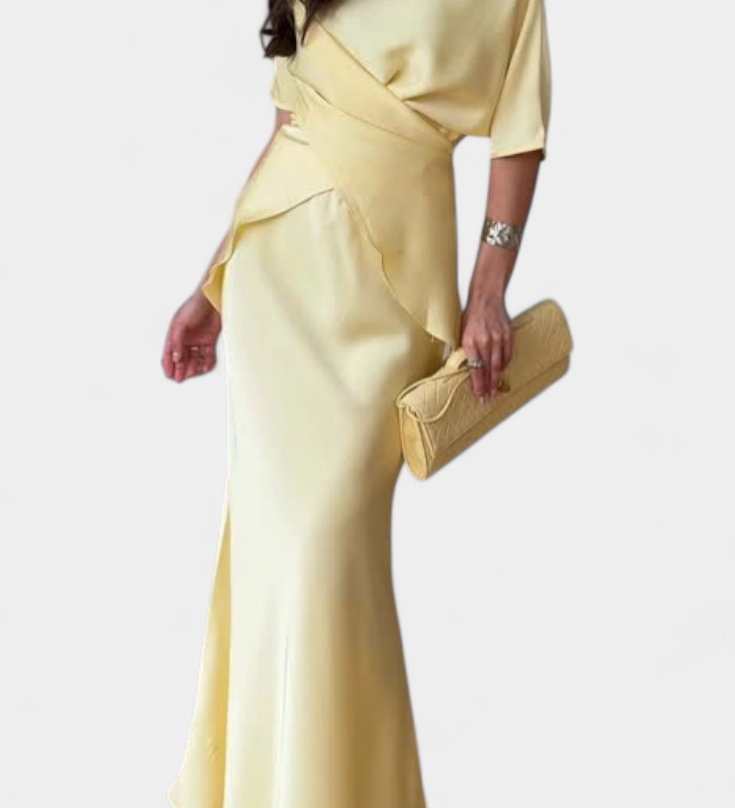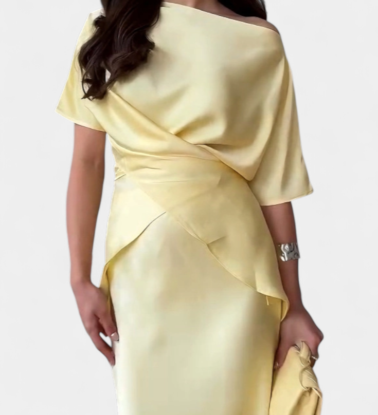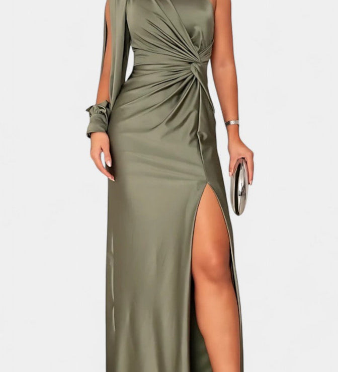 Десислава - Асиметрична Рокля с Драпиране на Едно Рамо