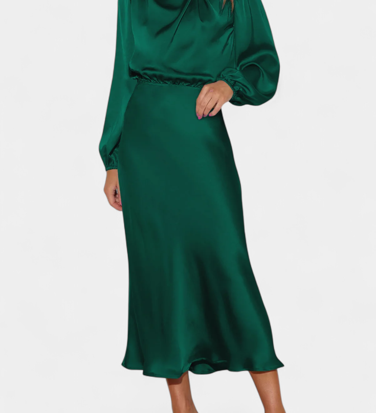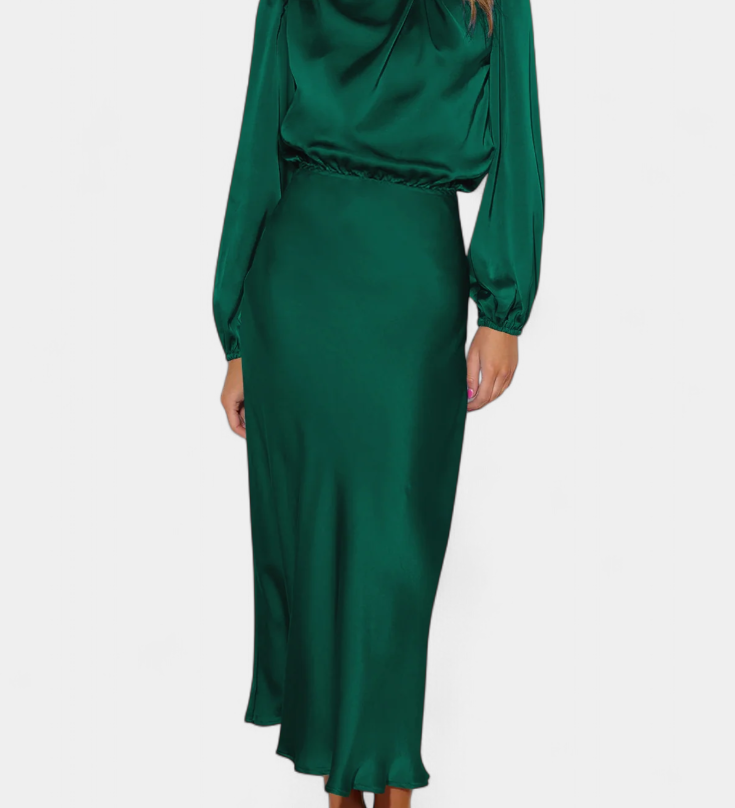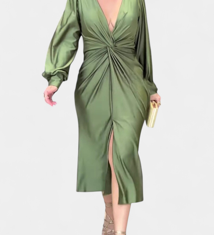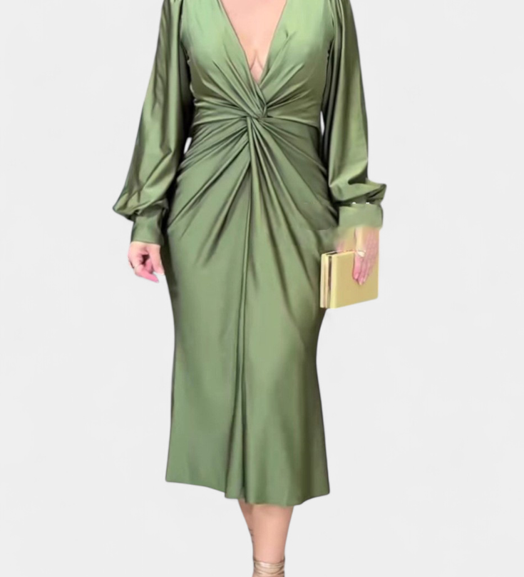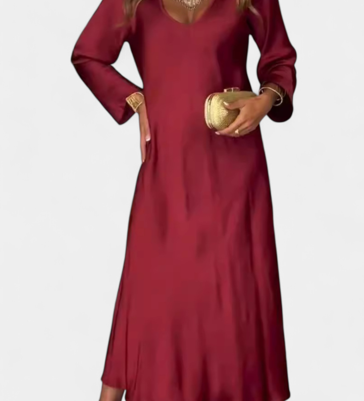 Даниела - Плавна Рокля с V Изрез и Дълги Ръкави