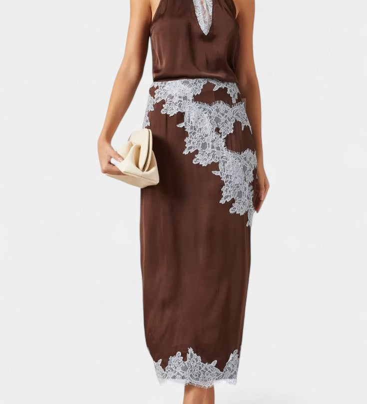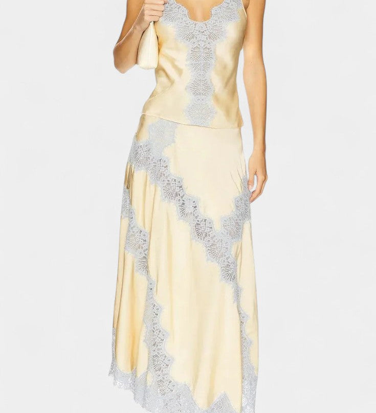 Надежда - Комплект Топ и Пола с Контрастни Чипкови Пана