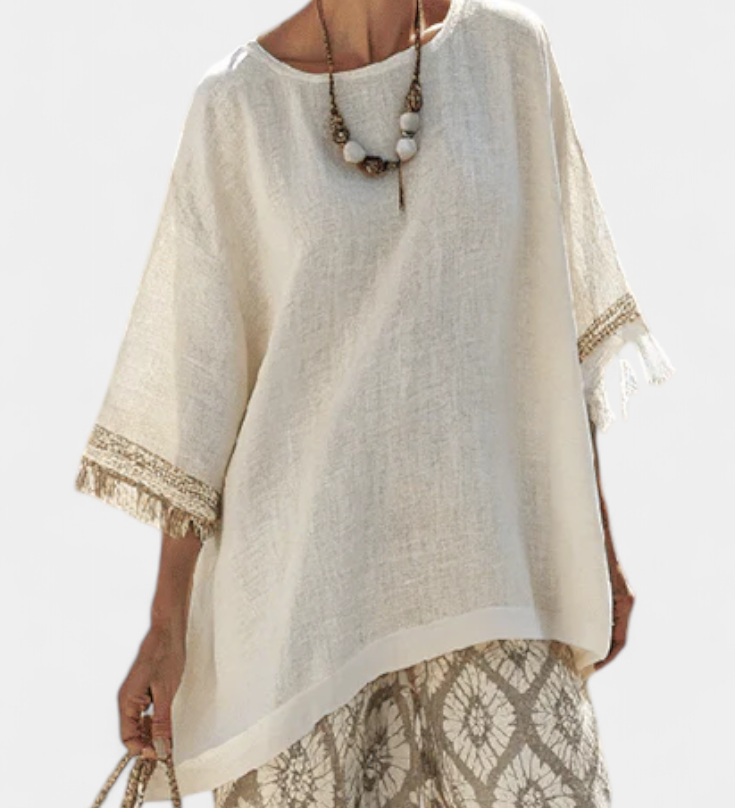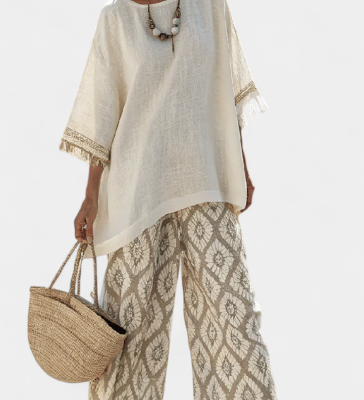 Елена - Широка Блуза и Печатни Панталони за Уникален Стил
