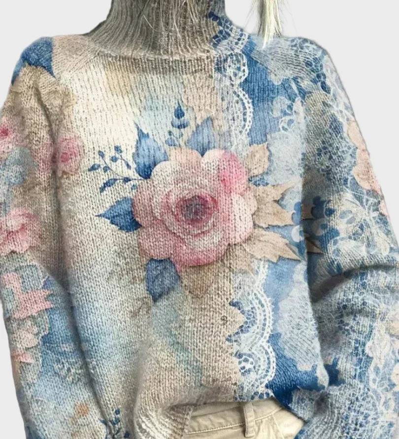 Десислава - Плетен Пуловер с Елегантен Цветен Узор