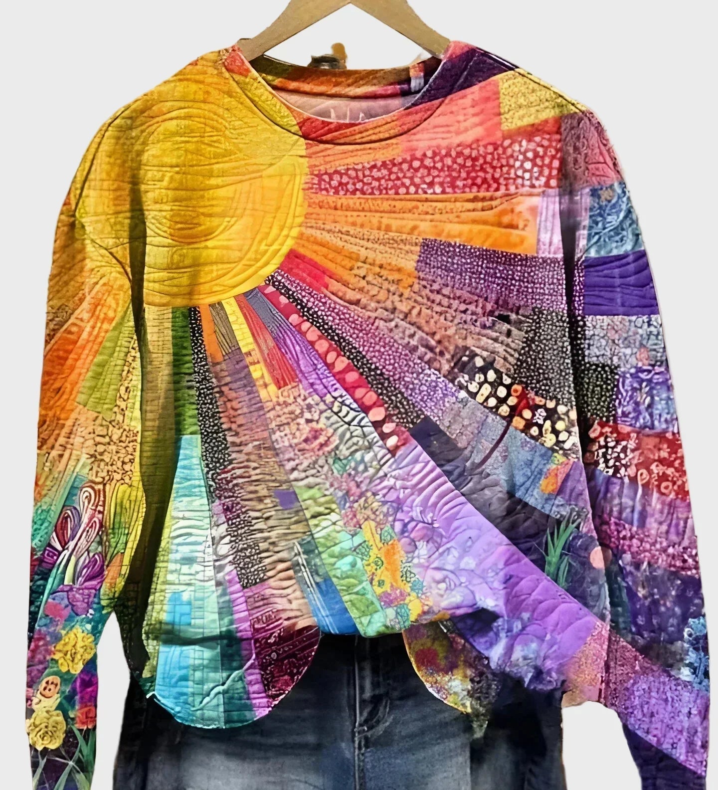 Милена - Плетена тениска с мотив на слънчеви лъчи