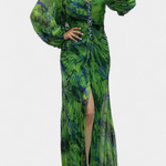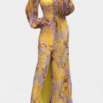 Елена - Макси Рокля с Плисиране, Дълги Ръкави и Вибрантни Узорци