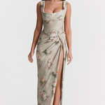 Импозантна и сензуална рокля, която комбинира елегантност с дръзка женственост. Нейната тясна силуета обвива тялото, докато разрезът на крака добавя неустоимо привлекателност. Идеален за вечерни излизания и оценени поводи, когато искаш да се откроиш.