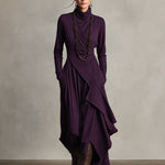 1. Асиметричният подгъв визуално удължава силуета, придавайки модерен вид и елегантност.