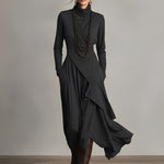 Макси роклята от трико Наталия е символ на модерна елегантност, комбинираща стил и комфорт. С нейното меко падане и асиметричен подгъв, тя подчертава фигурата и осигурява удобство, идеална за всяка ситуация, от офиса до вечерните излизания.