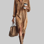 Открий роклята, която съчетава дискретна елегантност и ежедневен комфорт. Меката линия подчертава формите, без да ги ограничава, така че веднага ще се почувстваш удобно, от първото кафе сутрин до аперитива с приятелки. Вечен стил, замислен да те придружава всеки ден с грация и простота.