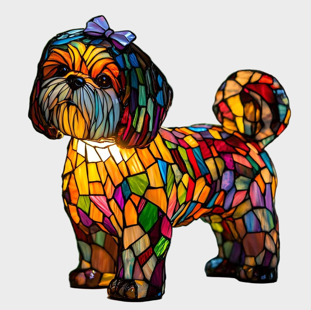 Внесете чар и цвят в пространството си с тази резинова лампа Ши Тцу, завършена със сладък детайл на лък. Нейното мозаечно сияне добавя както топлина, така и индивидуалност на всяка стая.