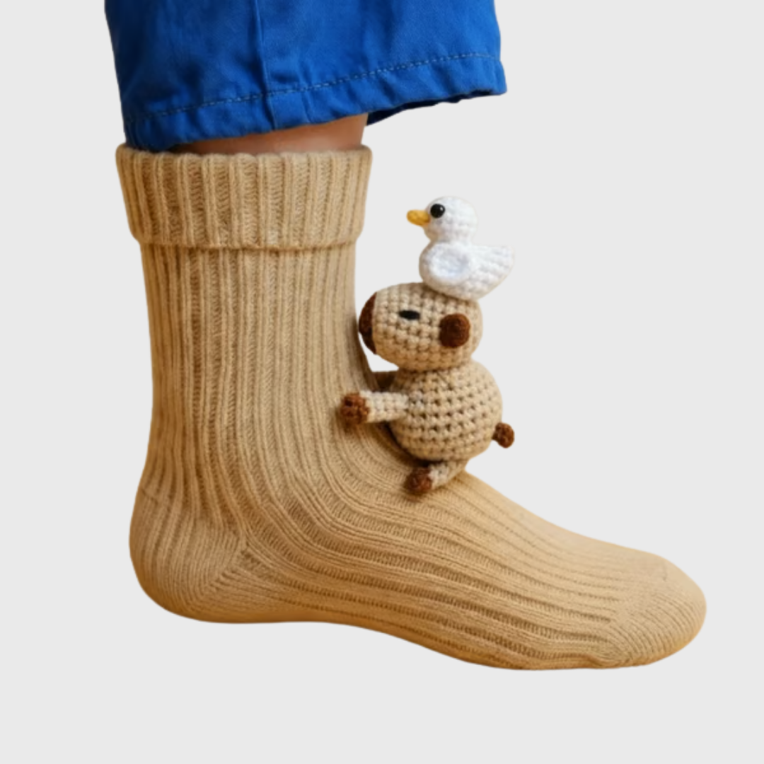 Чорапът, който прегръща — комфорт и удоволствие във всяка стъпка! Отведете уюта на съвсем ново ниво с този неустоим пухкав чорап, вдъхновен от симпатичен ленивец. Той обгръща глезена ви с нежна прегръдка, превръщайки моментите на почивка в истинска радост. Идеален е за релакс у дома или за да добавите щипка забавление в ежедневието си.