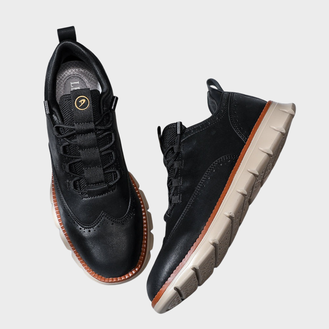 2. Комфорт с Висока Производителност: Леката подметка с ергономичен дизайн гарантира изключително омекотяване и поддръжка, което Ви позволява да се насладите на елегантността на официалната обувка с комфорт на маратонка.