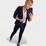1. Стилен и удобен съчетание – сакото и спортните панталони комбинират елегантност с неформалност, създавайки модерен и удобен стил.