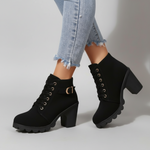 Стъпете в елегантност и повишете колекцията си от обувки с Стилни ботуши с метална катарама и връзки. Перфектно проектирани за съвременната модница, тези ботуши без усилие съчетават изразителен стил с дълготраен комфорт. Обемната подметка и детайлът с метална катарама добавят модерен естетически вид, правейки ги основна част от гардероба, която увеличава вашето самочувствие с всяка стъпка.